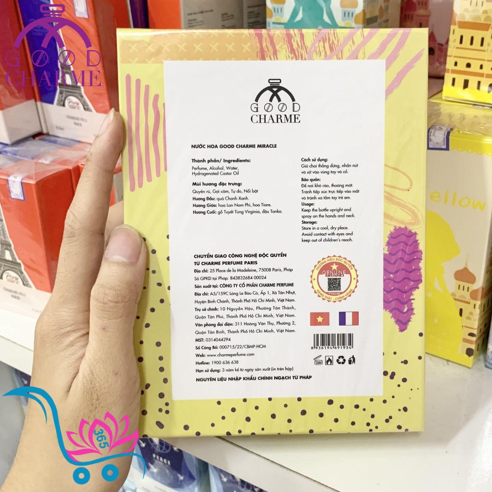 👉Nước Hoa Good Charme Miracle sử dụng nguyên liệu và điều chế mùi hương tại Pháp.